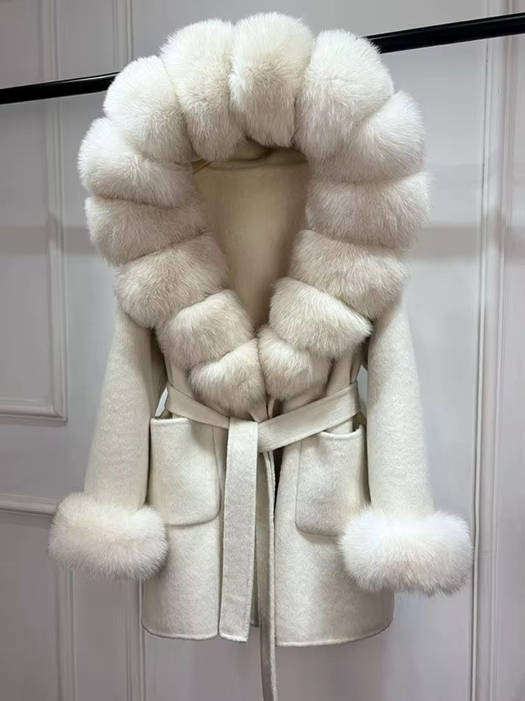 Experience Elegance and Style with our Latest Collection of Wool Blend Coats featuring Genuine Fox Fur Trims.