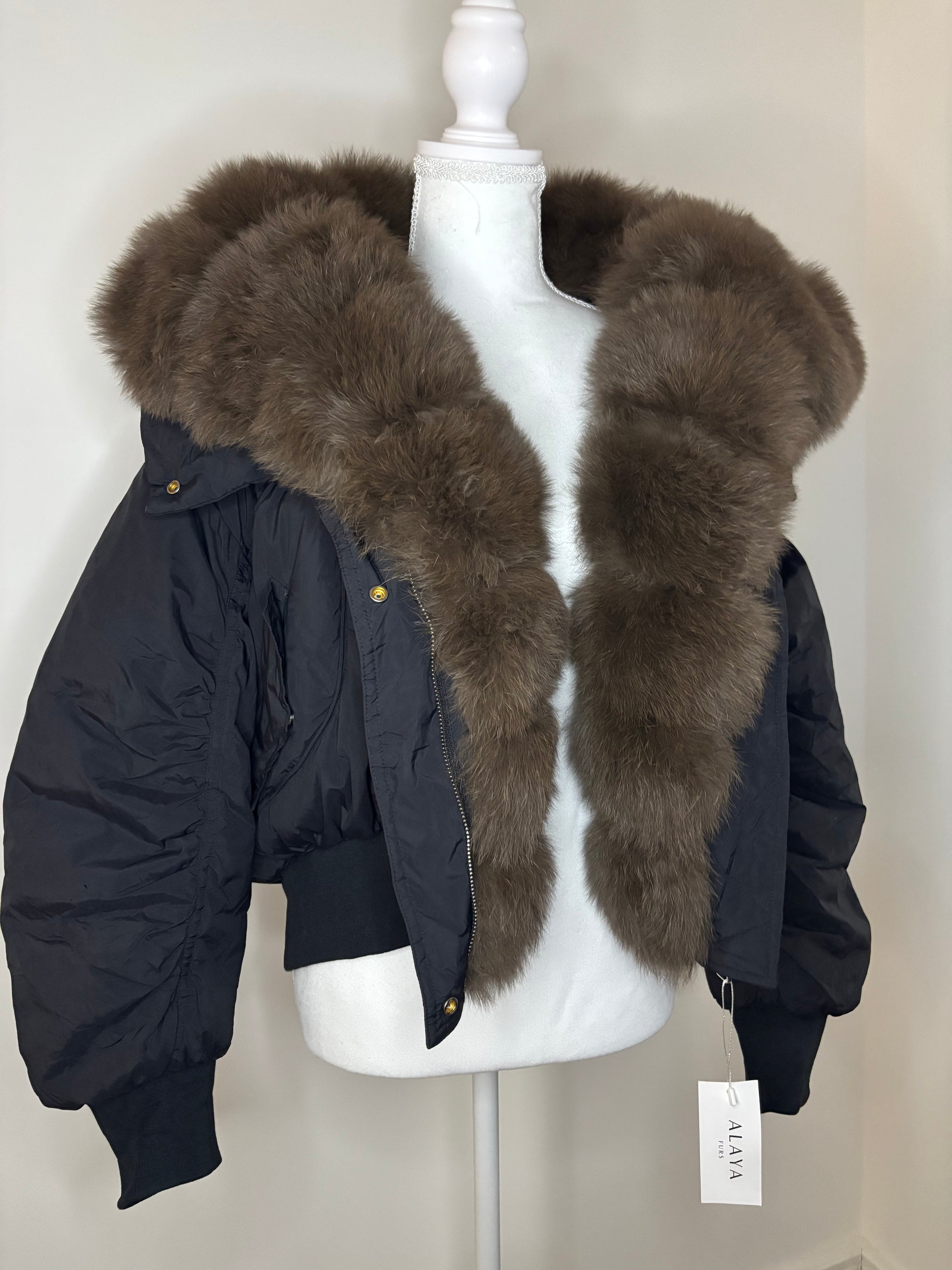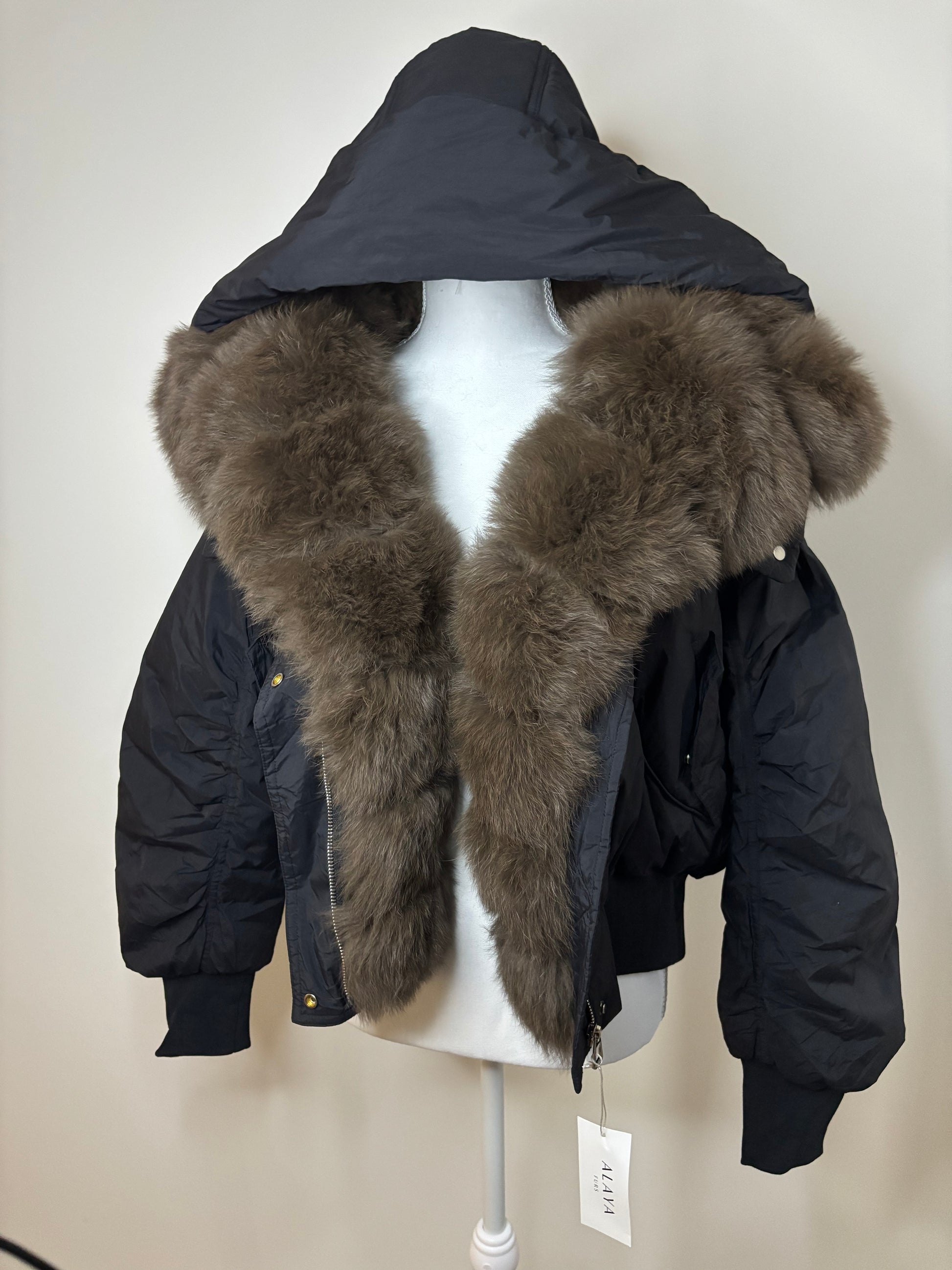 Black with brown fox fur size small.