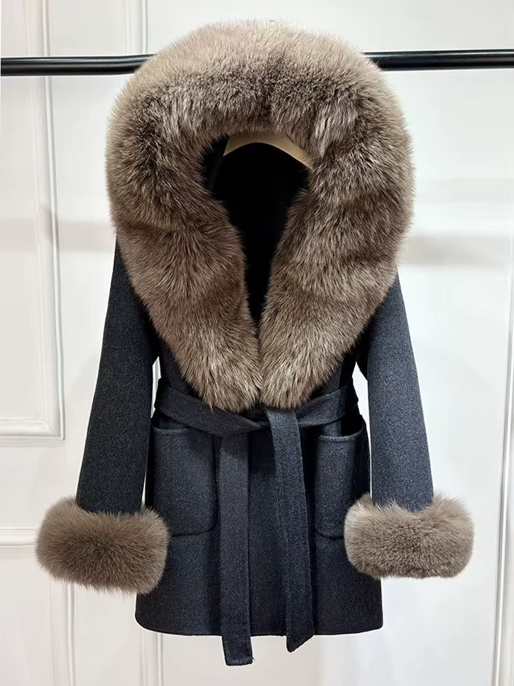 Real fox fur wool blends coat. This coat has a fox fur hood.