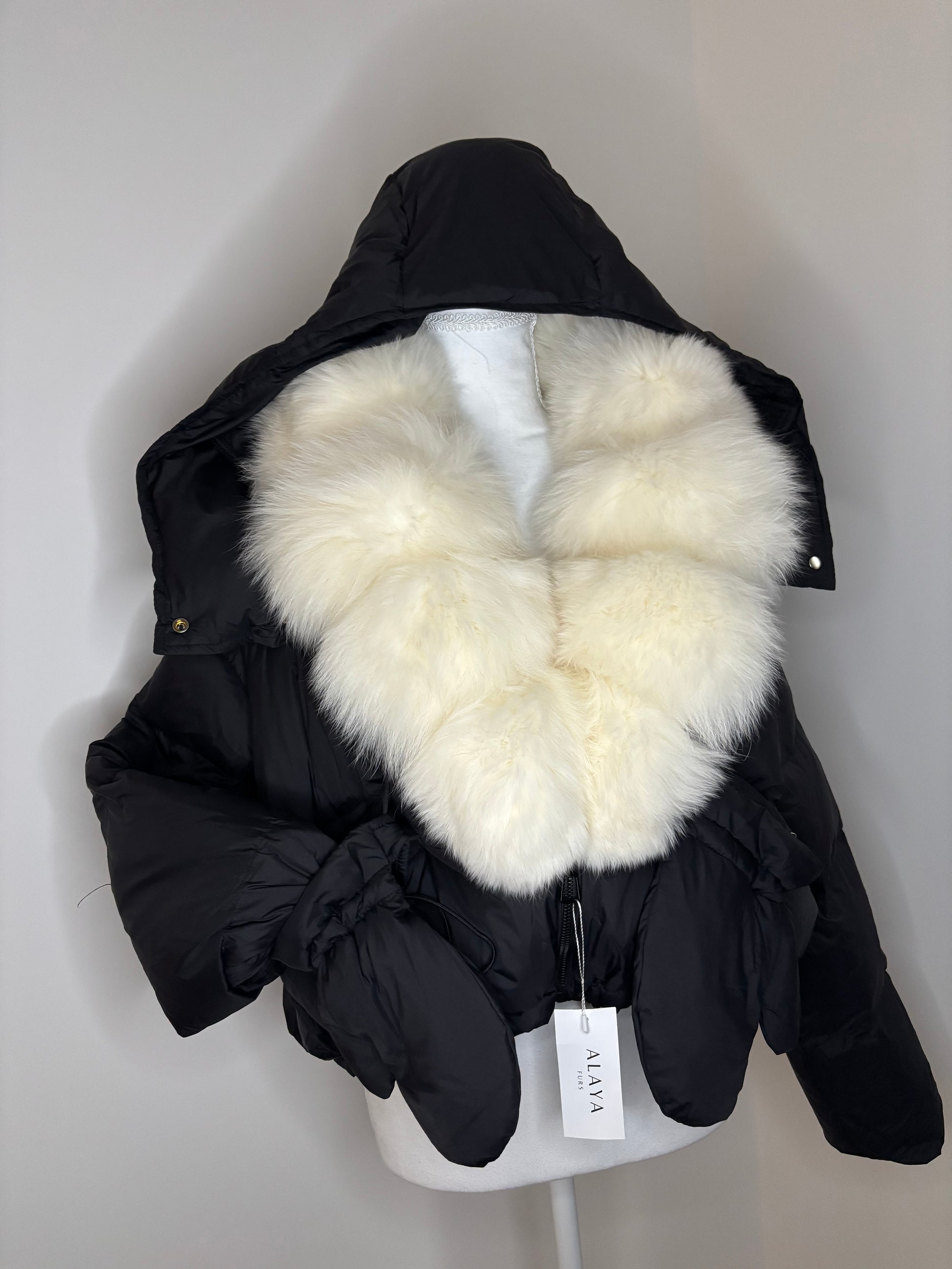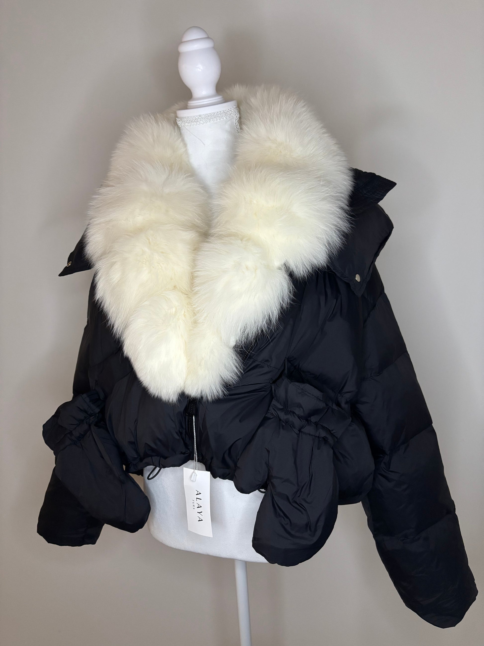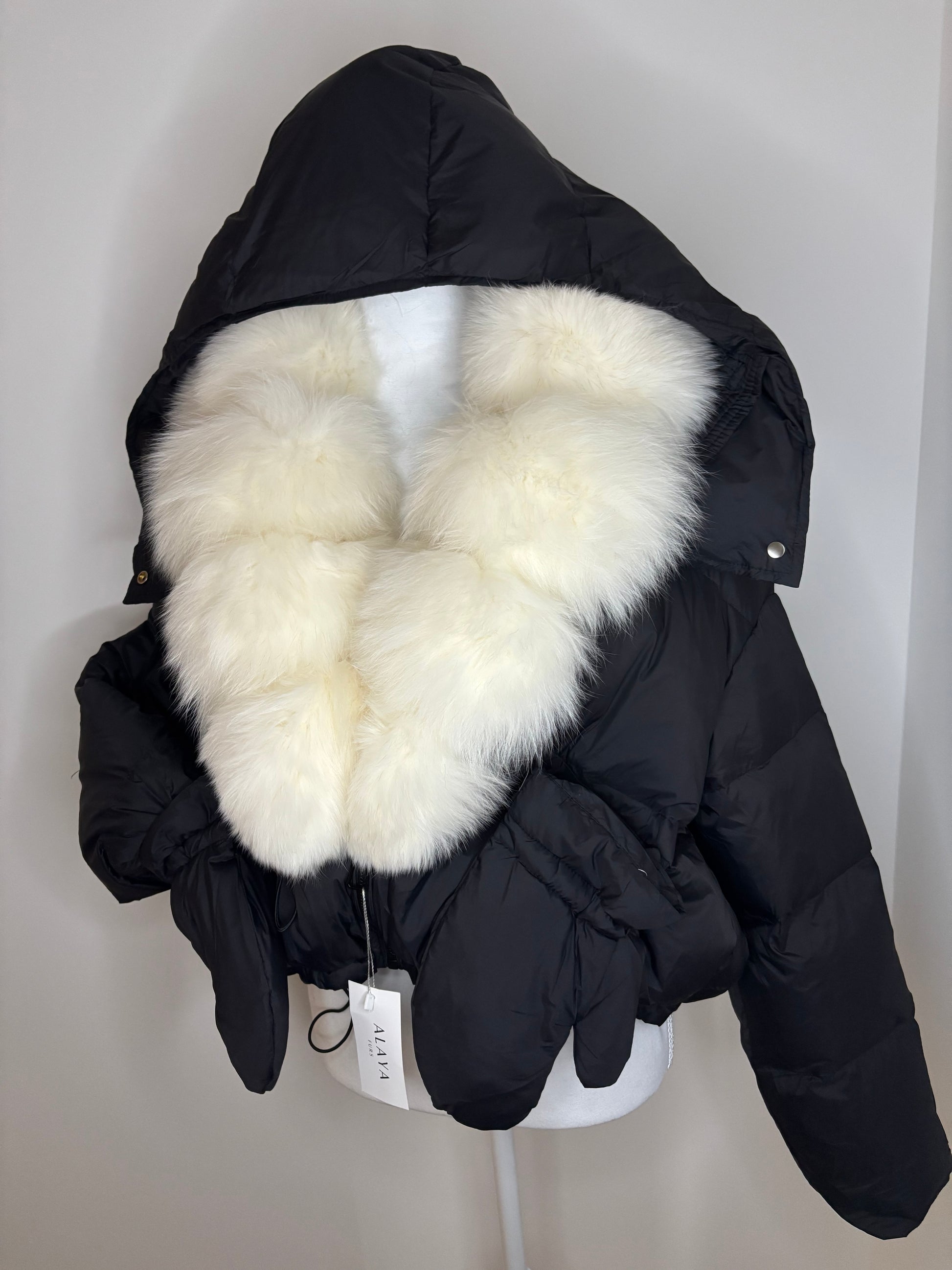 Black with white fox fur size small.